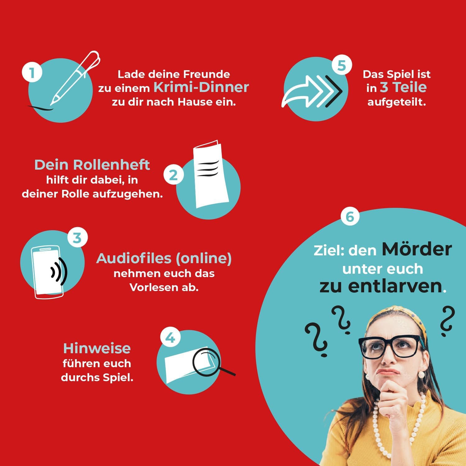 Zeigt eure Ermittlungskünste und entlarvt den/die Mörder/in unter euch, denn einer hat Nellie auf dem Gewissen!