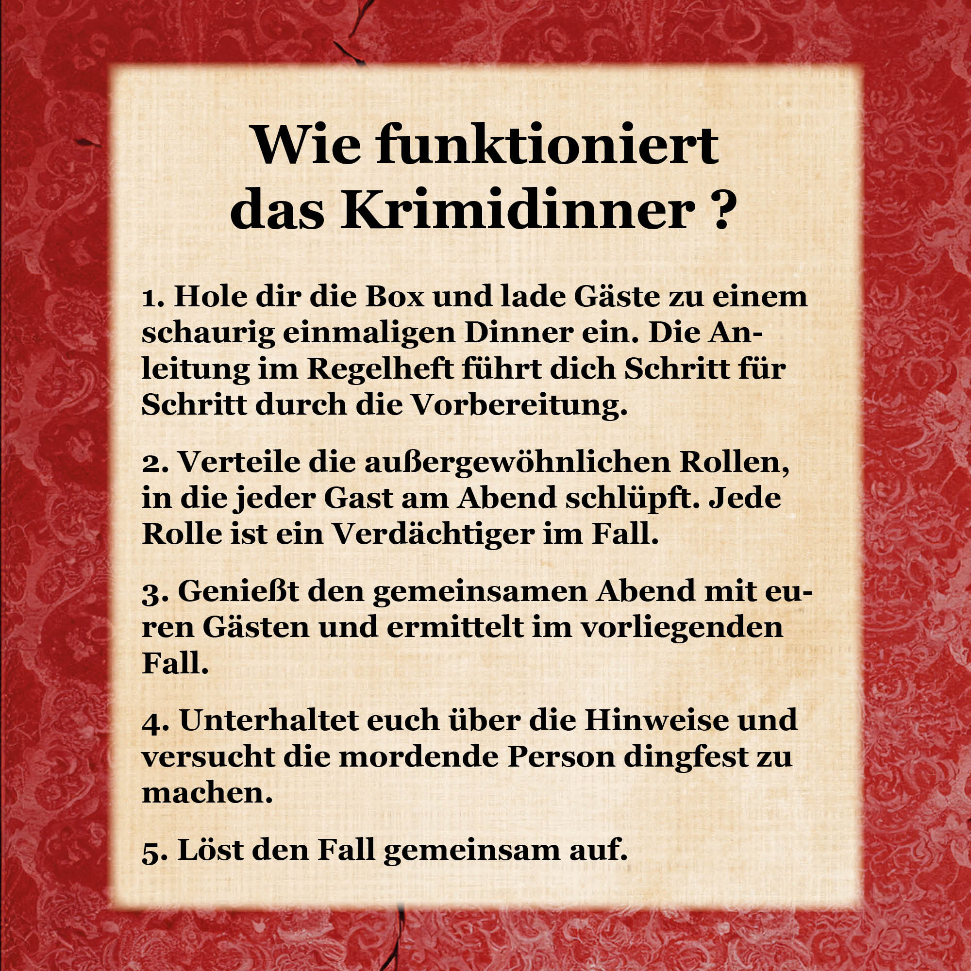 - Erstmalig: Krimidinner alleine, zu zweit oder mit weiteren Mitspielenden