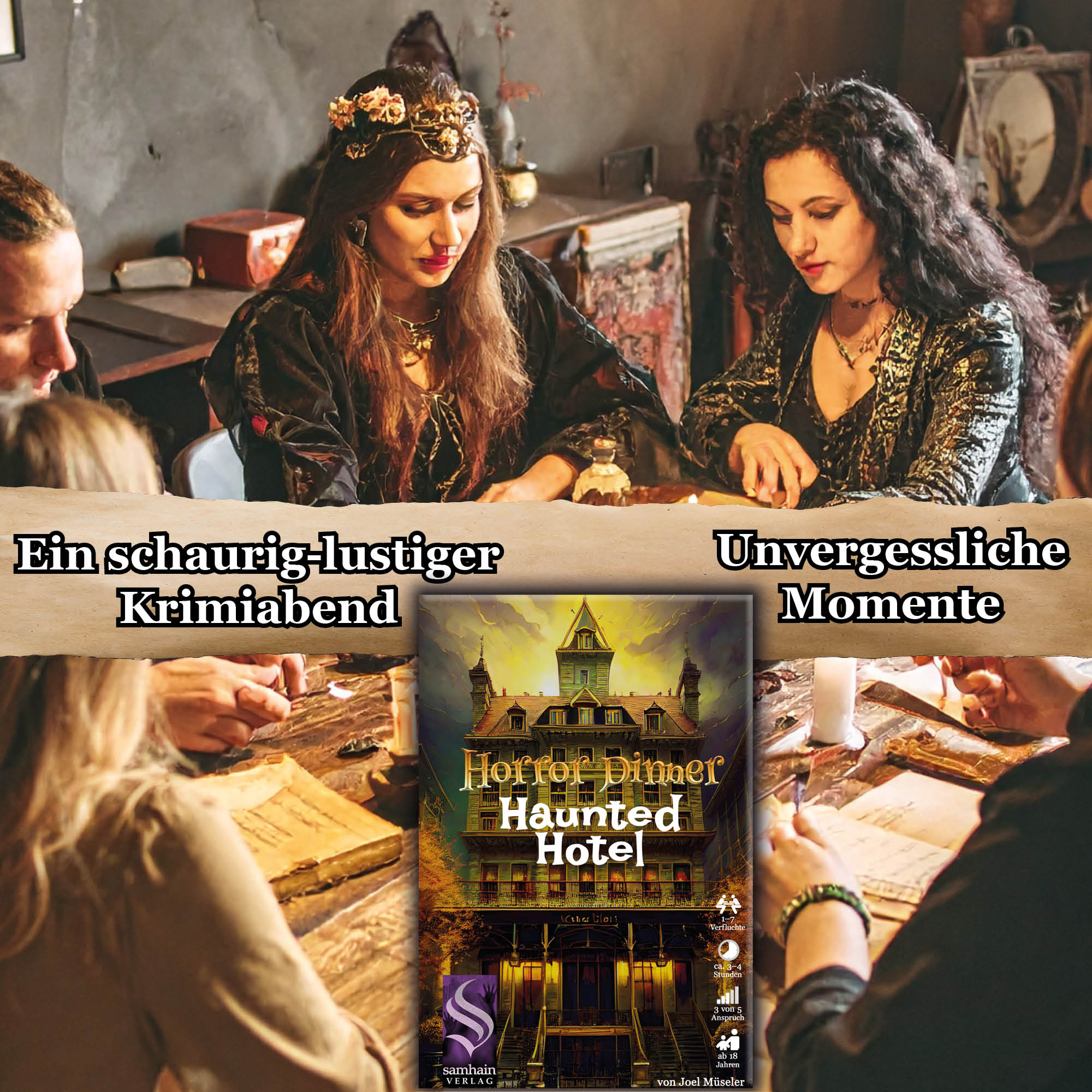 Jeder Dinner-Gast spielt eine gequälte Hotelseele auf der Suche nach den wahren Geheimnissen des dunklen Domizils und wird dabei auf sein eigenes, böses Grauen treffen!