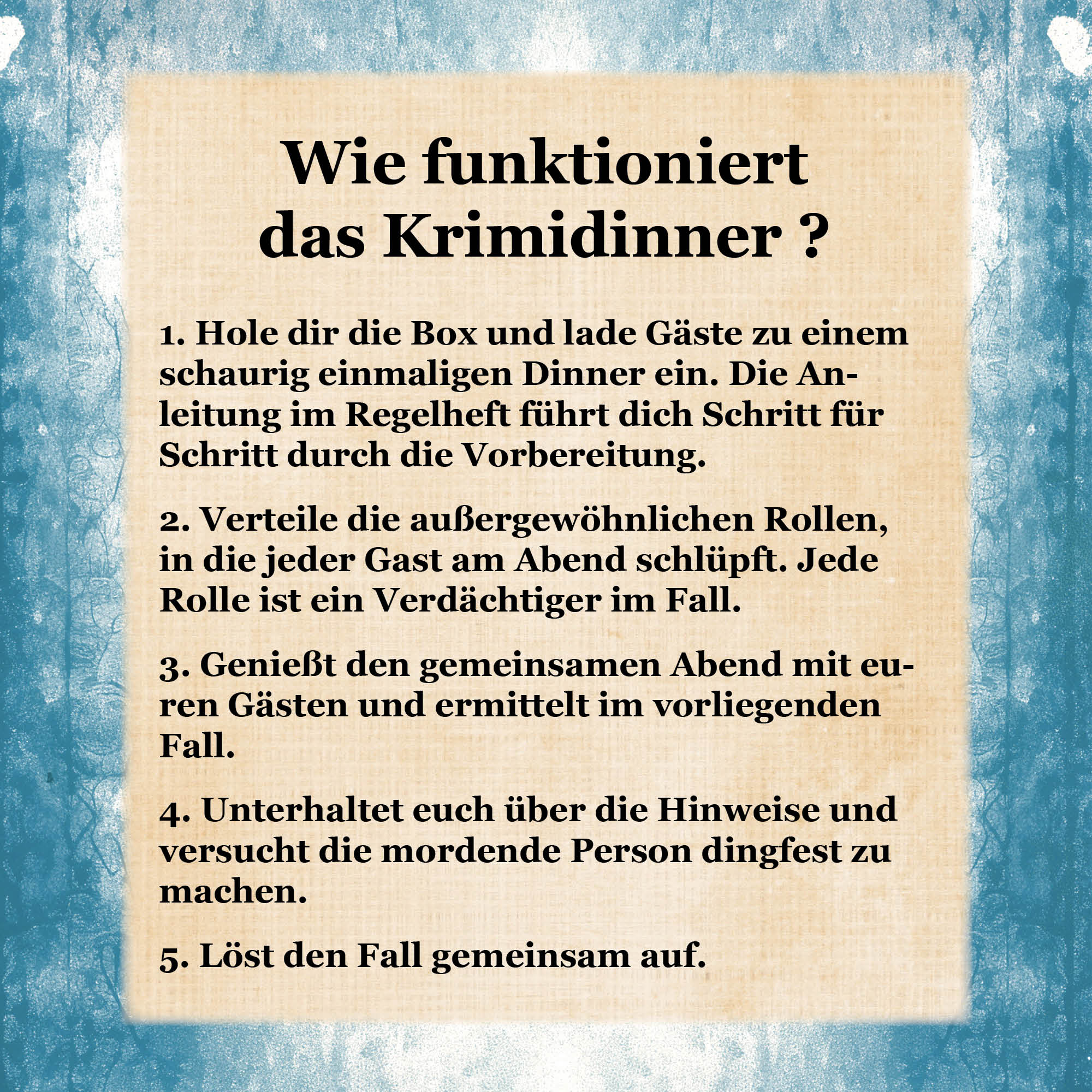 Stil des Spiels: | Anfängerfreundlich, Charakterorientiert, In anspruchsvoller Runde mit Abendgarderobe, Klassische Ermittlung, Mit darstellungsfreudigen Mitspielern |