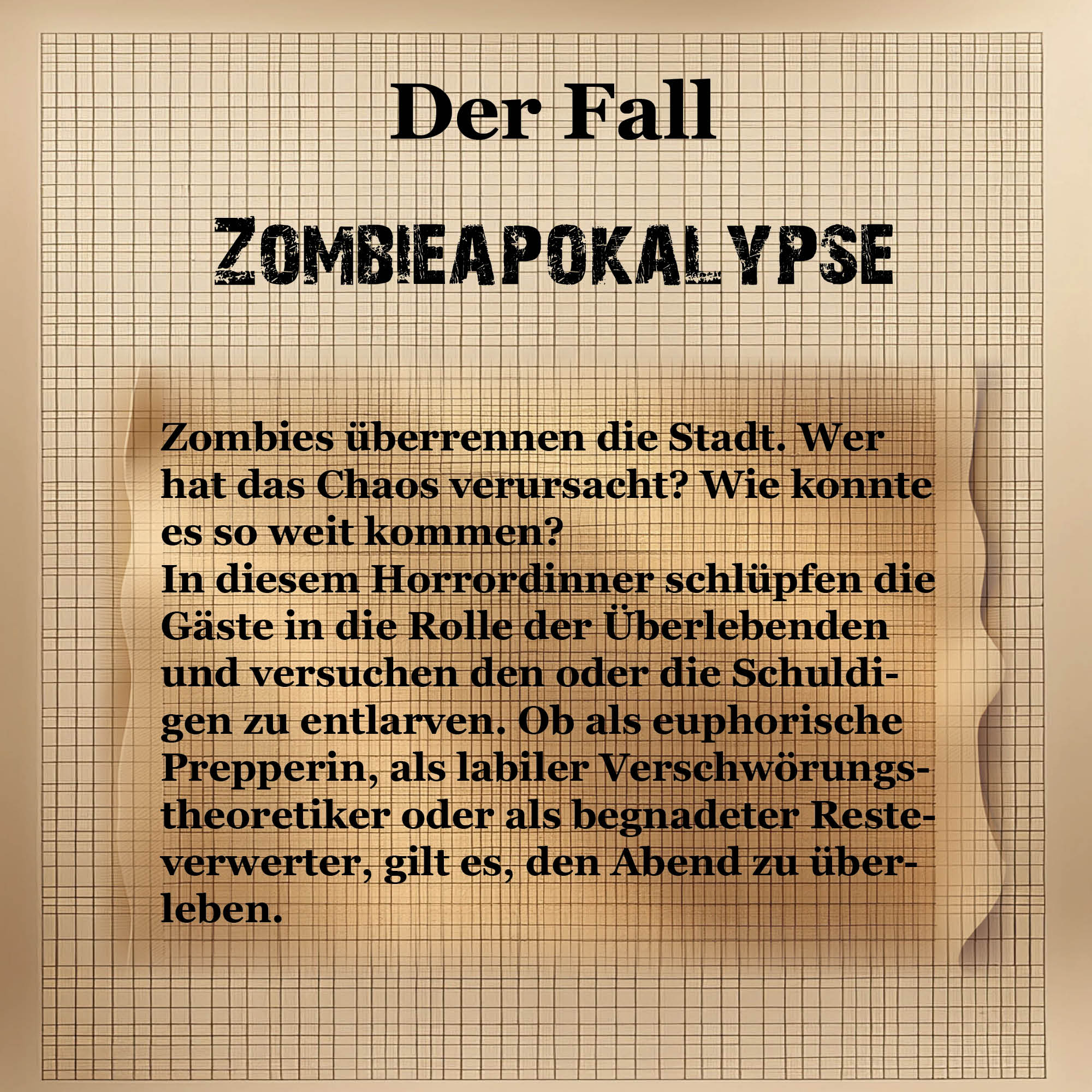 In diesem Horrordinner schlüpfen die Gäste in die Rolle der Überlebenden und versuchen den oder die Schuldigen zu entlarven. Ob als euphorische Prepperin, als labiler Verschwörungstheoretiker oder als begnadeter Resteverwerter, gilt es, den Abend zu überleben.
